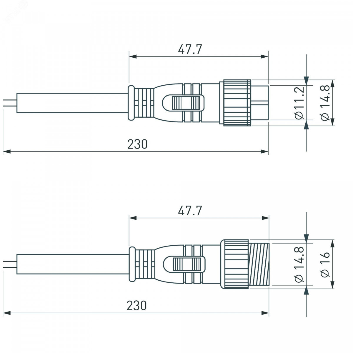 Коннектор подключения ARL-LINE-4pin предназначен для управления светодиодными прожекторами серии LINE с помощью протокола DMX512. Габариты разъёма DxH составляют D18х48мм, а длина разъёма с проводом - 230мм.