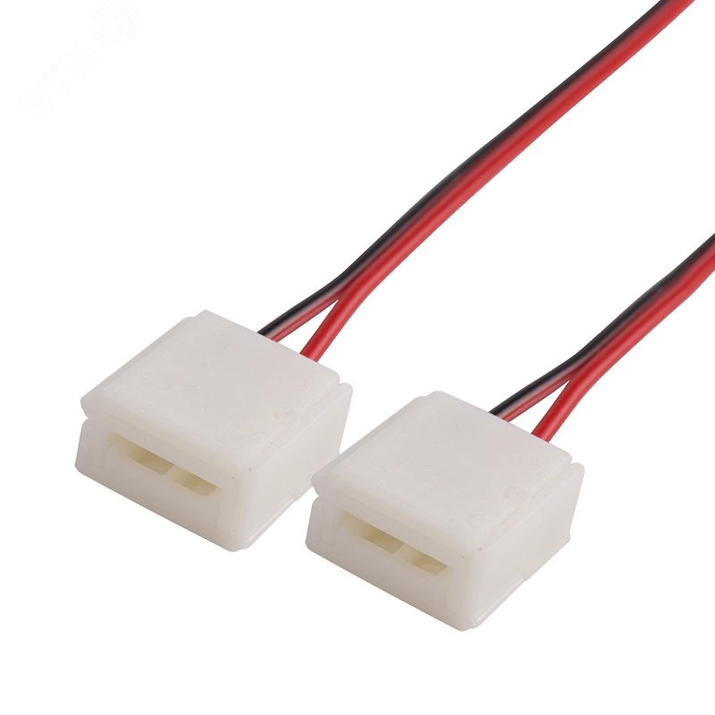 Применяется для гибкого соединения двух отрезков одноцветной светодиодной ленты с влагозащитой шириной 10 мм без пайки