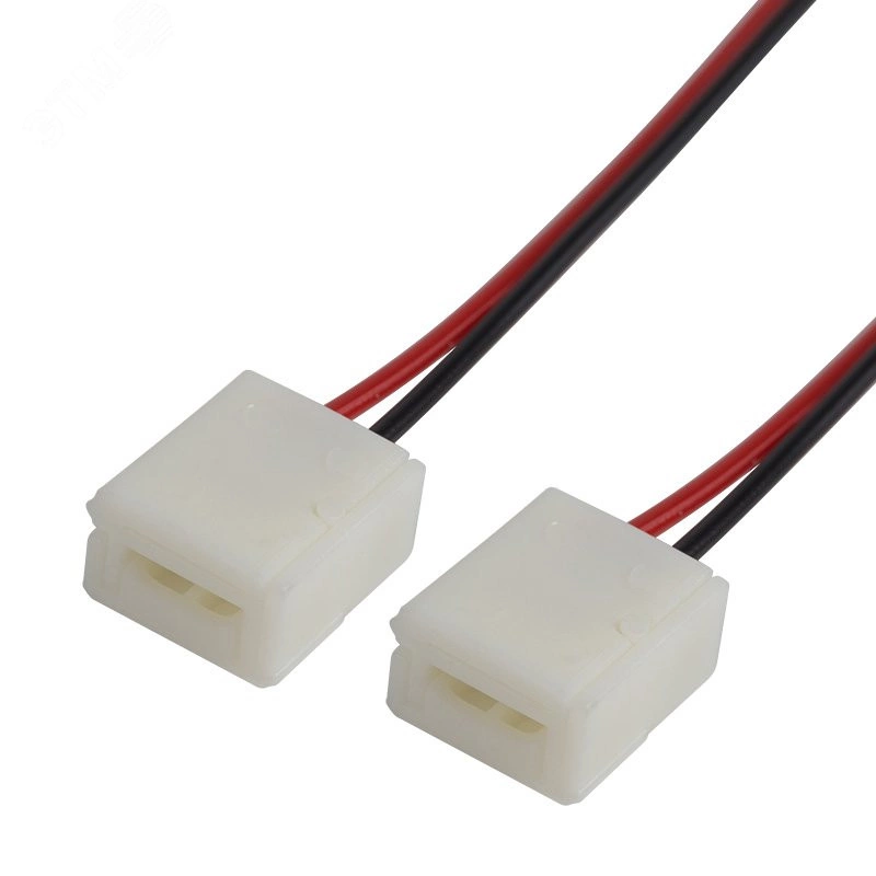 Применяется для гибкого соединения двух отрезков одноцветной светодиодной ленты с влагозащитой шириной 8 мм без пайки