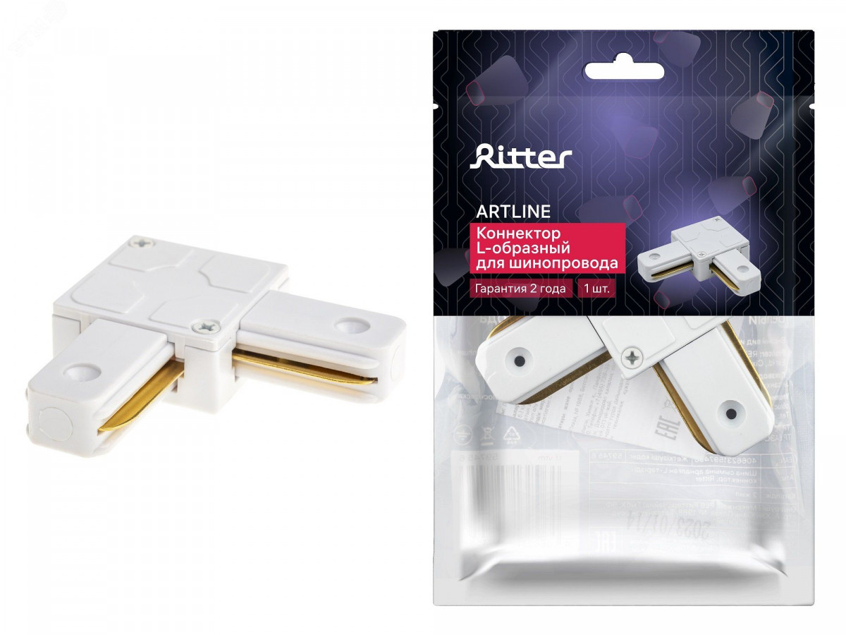 Коннектор трековый, для соединения шинопровода, L-образный, жесткий, ARTLINE, пластик/медь, белый, 59745 6, Ritter
