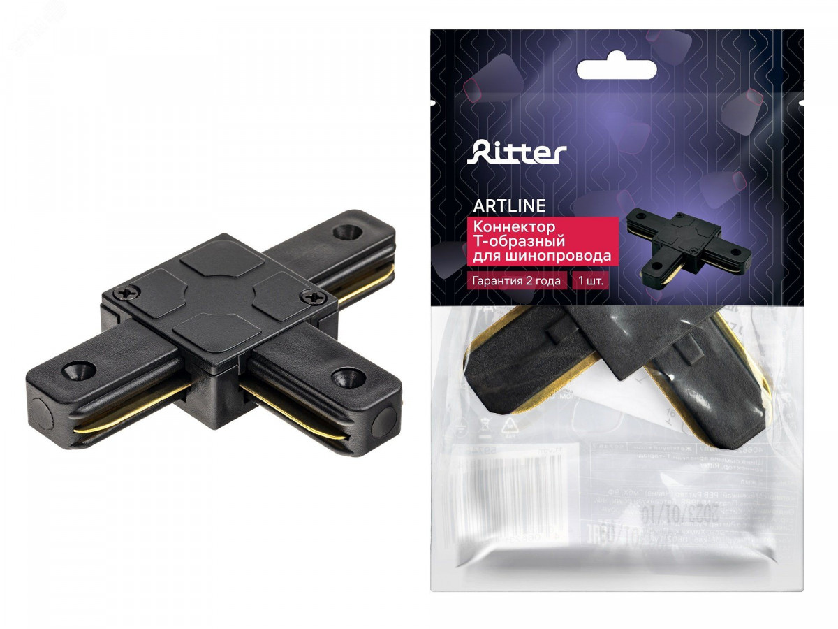 Коннектор трековый, для соединения шинопровода, Т-образный, жесткий, ARTLINE, пластик/медь, черный, 59748 7, Ritter