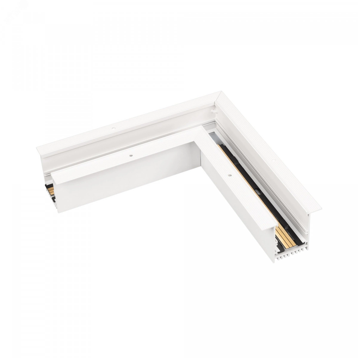 Угловой прямой коннектор MAG-CON-4560-F-L90 (WH) для встраиваемого трека MAG-TRACK-4560-F. Напряжение питания 24 В. Аксессуары для соединения с треком приобретаются отдельно.