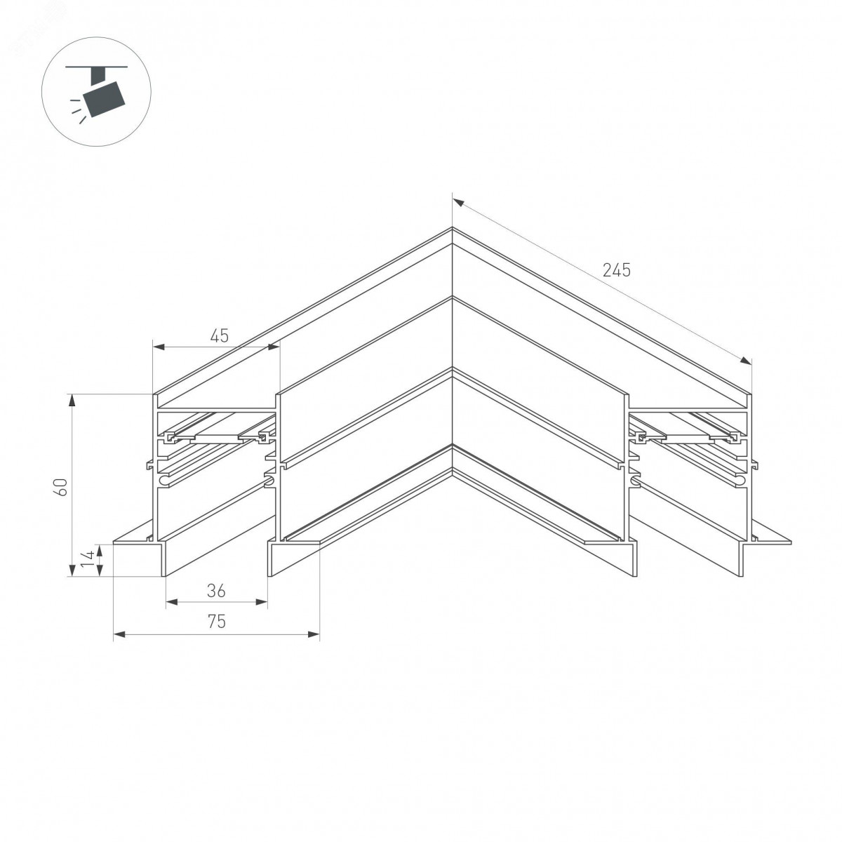 Угловой прямой коннектор MAG-CON-4560-FDW-L90 (BK) для встраиваемого трека MAG-TRACK-4560-FDW. Напряжение питания 24 В. Аксессуары для соединения с треком приобретаются отдельно.