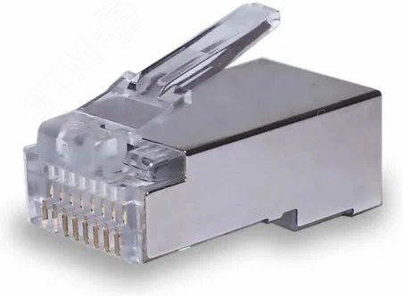 Коннектор RJ45 используется для оконцевания экранированного кабеля витой пары категории 5е. Имеет универсальные ножи, подходящие для одножильного и многожильного кабеля.