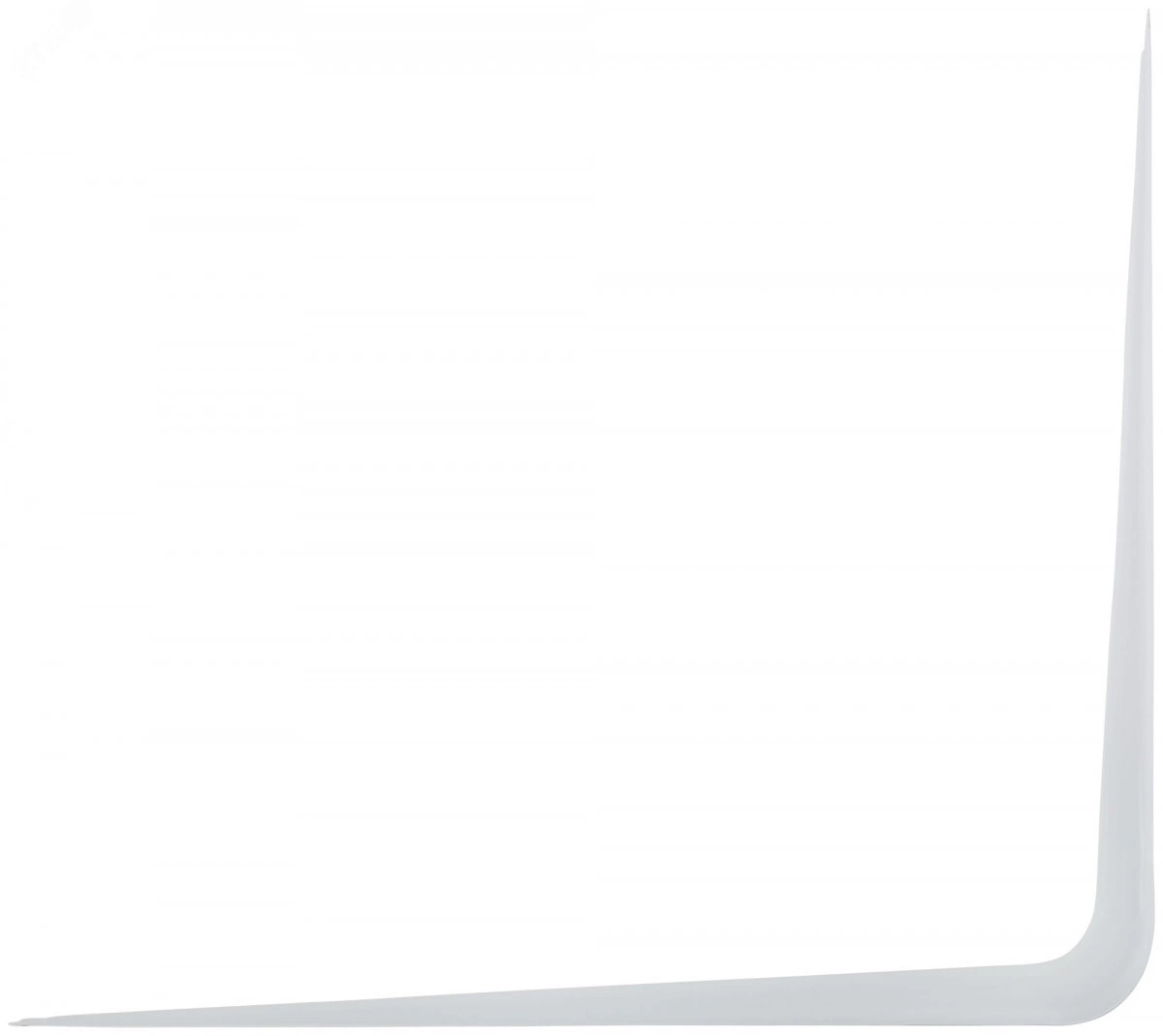 Стальная консоль с ребром жёсткости. Рекомендуемая нагрузка – 15 кг(на комплект). Расшифровка маркировки: 100 (75/150/250/300/350) - длина основания в мм, 125 (200/300/350/400/100) - длина крепежной полки в мм, 0,7 (0.9/1.0) мм - толщина. Цвет - белый