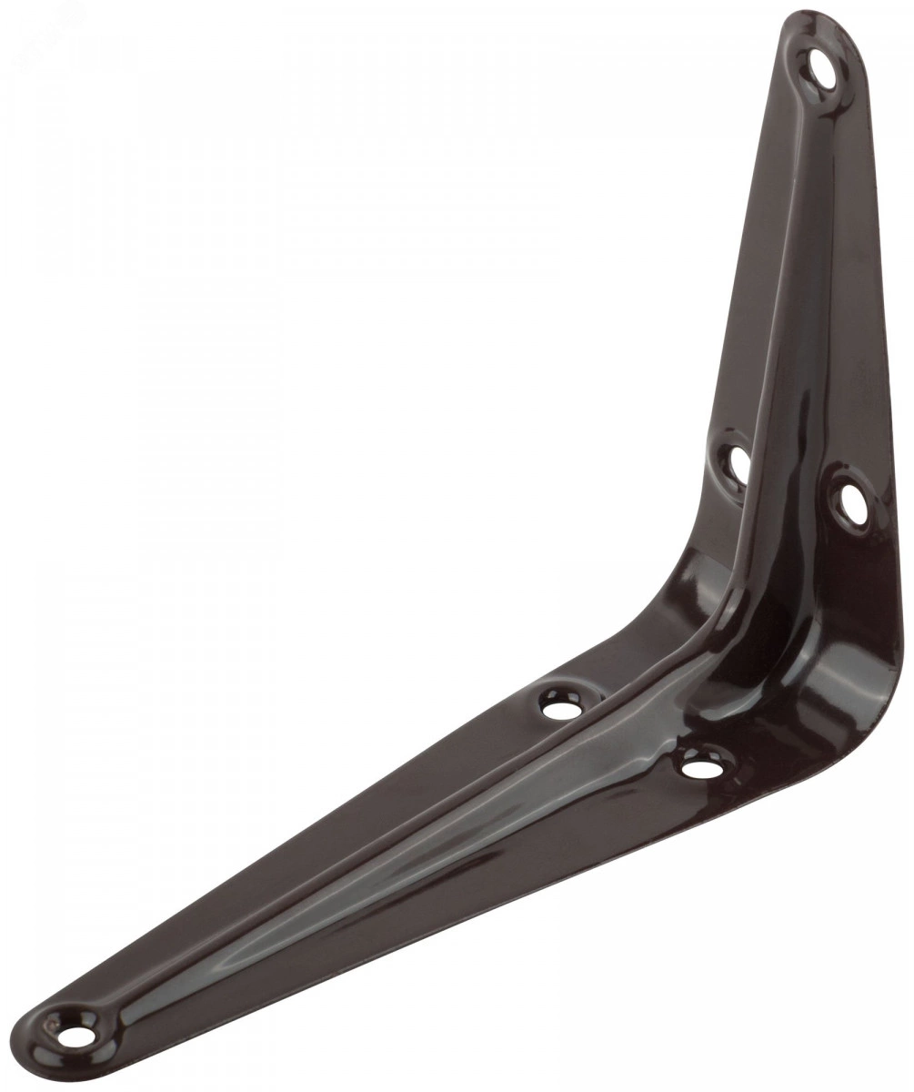Стальная консоль с ребром жёсткости. Рекомендуемая нагрузка – 15 кг(на комплект). Расшифровка маркировки: 100 (75/150/250/300/350) - длина основания в мм, 125 (200/300/350/400/100) - длина крепежной полки в мм, 0,7 (0.9/1.0) мм - толщина. Цвет - коричневый