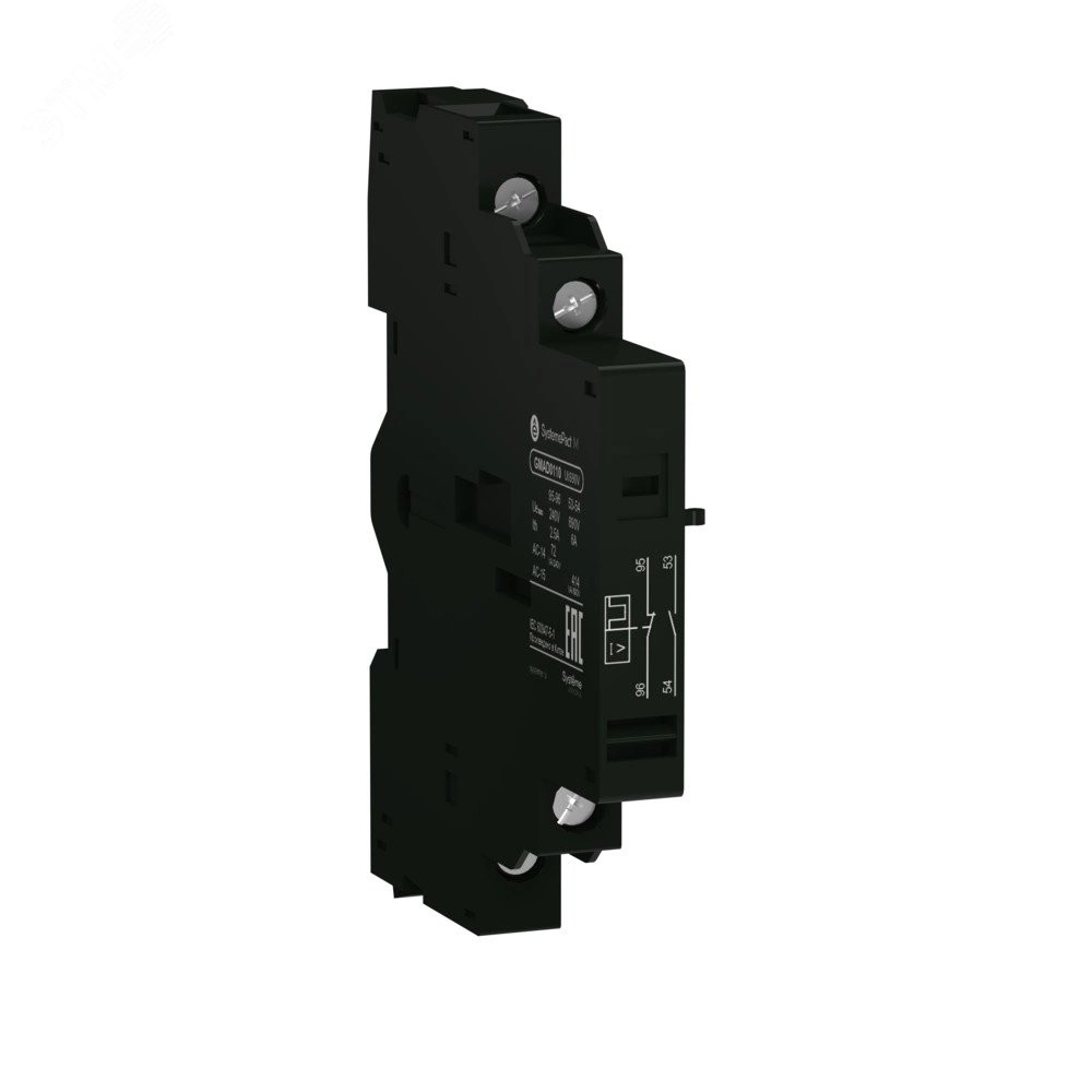 Дополнительный контакт мгновенного действия сигнализации состояния и аварийного отключения для автоматических выключателей серии SystemePact GM2, исполнение - 1НЗ (аварийный) + 1НЗ, монтаж – сбоку слева от выключателя. Дополнительные контакты применяются совместно с автоматическими выключателями и предназначены для увеличения количества вспомогательных контактов, использующихся в цепях сигнализации и управления.