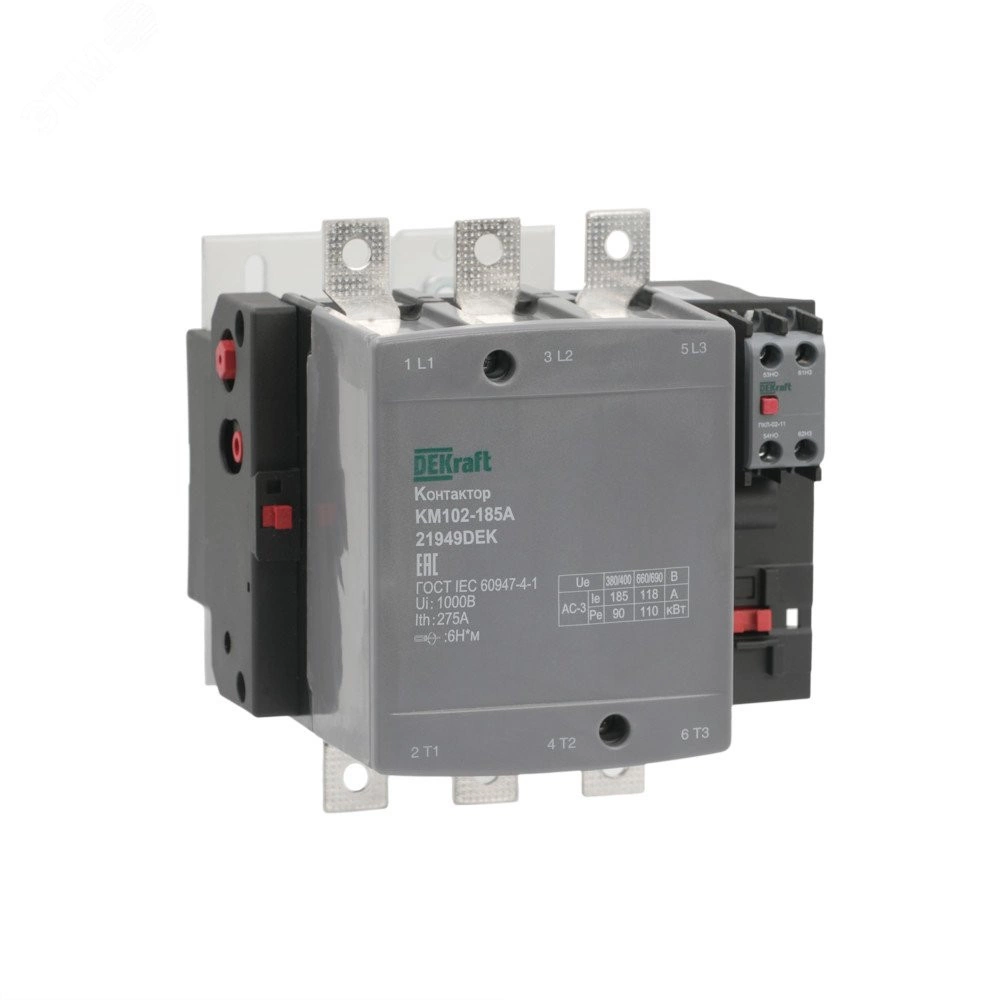 Контактор серии КМ-102 Dekraft, 3P, номинальный ток - 185 А (AC3, AC4), напряжение управления 230 В пер.тока, доп.контакты 1НО+1НЗ, установка на монтажную плату. Контакторы КМ-102 предназначены для пуска и останова асинхронных двигателей, для коммутации осветительных сетей, в сетях напряжением до 690 В пер.тока. Дополнительные защитные крышки исключают попадание пыли внутрь контактора и обеспечивают защиту от случайного прикосновения.