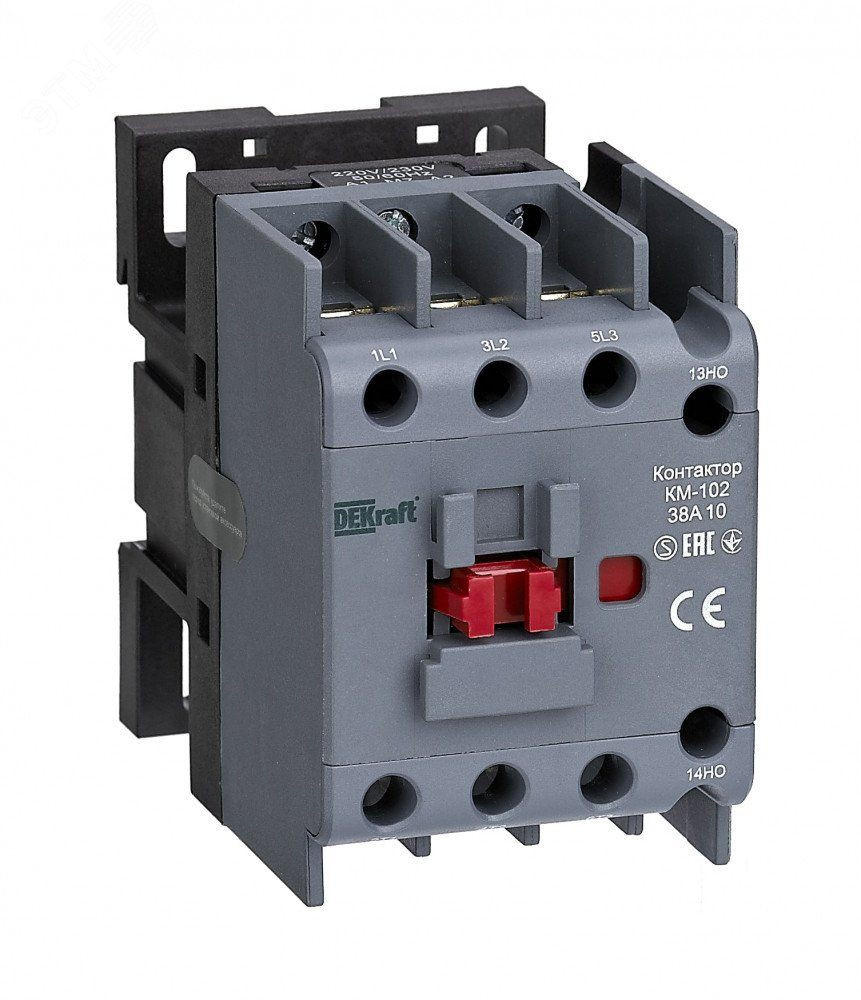 Контактор серии КМ-102 DEKraft, 3P, номинальный ток - 38 А (AC3, AC4), напряжение управления 220 В пер.тока, доп.контакты - 1НЗ, установка - на стандартную DIN-рейку. Контакторы КМ-102 предназначены для пуска и останова асинхронных двигателей, для коммутации осветительных сетей и конденсаторных батарей в сетях напряжением до 690 В пер.тока. Дополнительные защитные крышки исключают попадание пыли внутрь контактора и обеспечивают защиту от случайного прикосновения.
