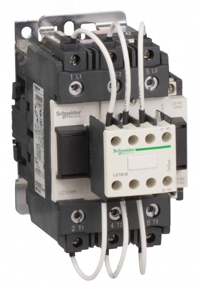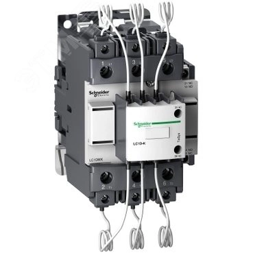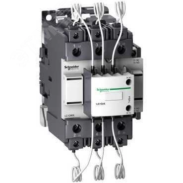 Нереверсивный контактор для коммутации трехфазных коденсаторных батарей, используемых для коррекции коэффициента мощности. Цепь управления 230В AC.