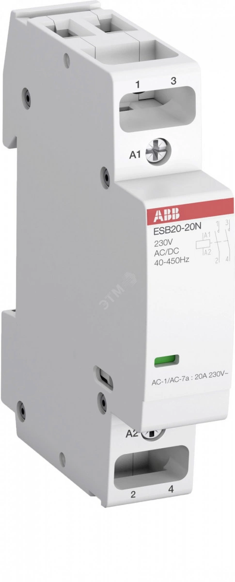 Полное описание: Контактор ESB20-02N-06 модульный (20А АС-1, 2НЗ), катушка 230В AC/DC