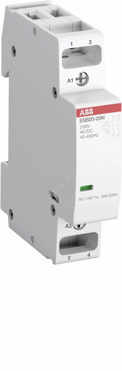 Полное описание: Контактор ESB20-11N-01 модульный (20А АС-1, 1НО+1НЗ), катушка 24В AC/DC