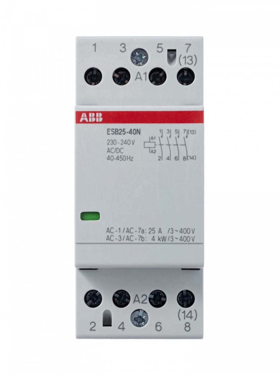 Контактор ESB25-40N-06 модульный (25А АС-1, 4НО), катушка 230В AC/DC