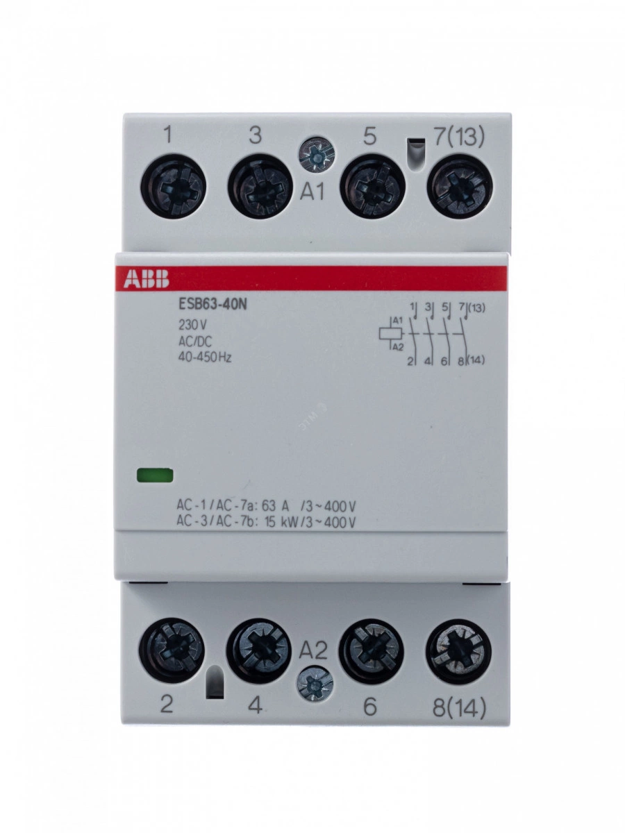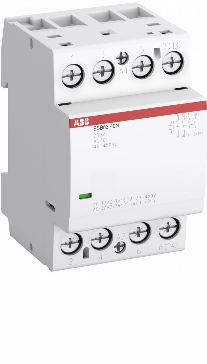 Полное описание: Контактор ESB63-40N-06 модульный (63А АС-1, 4НО), катушка 230В AC/DC