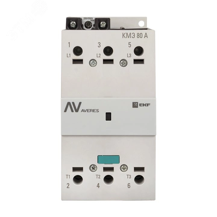 Контакторы КМЭ EKF AVERES состоят из корпуса, закрепленных в нем неподвижных контактов, подвижных контактов, которые закреплены в подвижной части магнитной системы. Неподвижная часть магнитной системы закреплена жестко в корпусе КМЭ. Пружина препятствует смыканию контактов. При подаче напряжения на катушку управления в магнитной системе контактора возникает магнитное поле, которое, преодолевая сопротивление пружины, смыкает магнитную систему и замыкает контакты. При отключении напряжения с катушки управления пружина размыкает контакты. Возможна коммутация алюминиевым и медным проводом.