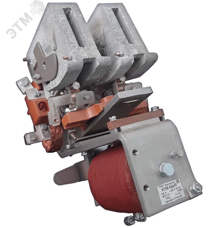Контактор КТПВ 623 У3 Uн ~380 В Iн -160 А Uупр -110 В б/к п.п., также, как и другие контакторы серии КТПВ600 предназначены для включения и отключения электрических цепей в стационарных установках. Номинальное напряжение втягивающей катушки 110В. Контактор КТПВ623 изготовляется без блок-контактов. Два однотипных контактора Aс серии КТПВ600, установленные рядом, можно механически блокировать. При этом правый контактор, к которому с левой стороны крепится механическая блокировка, допускает установку блок-контактов только с правой стороны. Масса контактора 14 килограмм. Контакторы изготавливаются без плит и допускают установку как на изоляционных или металлических заземленных плитах, так и на рейках.