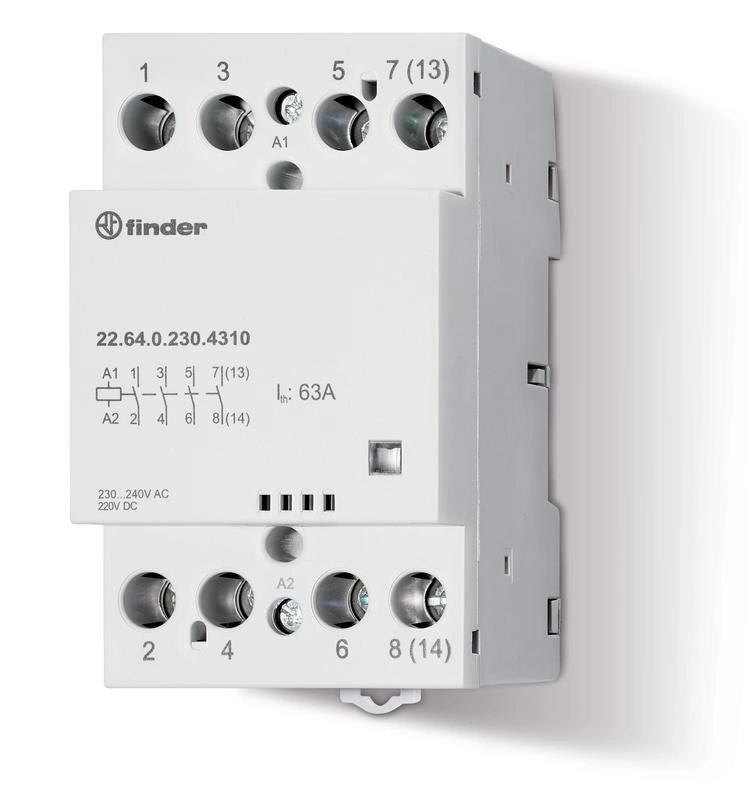 Полное описание: Контактор модульный 4NO 63А AgSnO2 230В AC/DC 53.5мм IP20 опции: мех. индикатор FINDER 226402304310