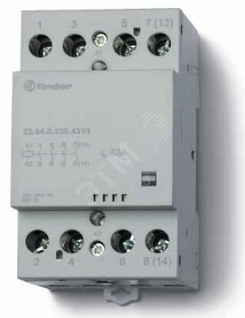 Контактор модульный 63А 2NO+2NC катушка 230В AC/DC механический индикатор AC/DC AgSnO2