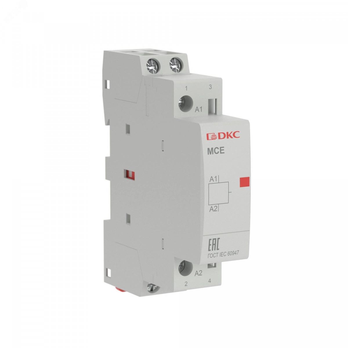 Контактор модульный YON max типа MCE, 2P, 25A, 240В, 2НО, предназначен для коммутации электрических цепей в нормальном режиме работы путем подачи на катушку контактора управляющего напряжения