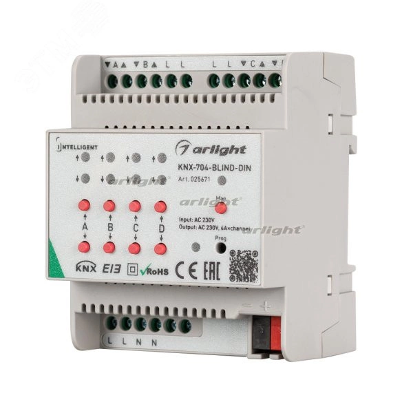Контроллер штор KNX-704-BLIND-DIN (230V, 4x6A) (IARL, Пластик)