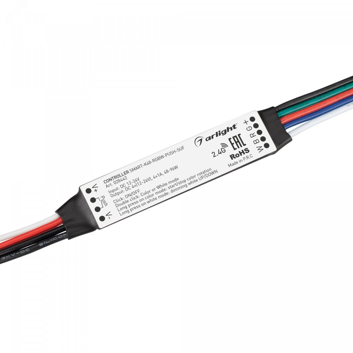 Полное описание: Контроллер SMART-K48-RGBW-PUSH-SUF (12-24V, 4x1A, 2.4G) (Arlight, Пластик)