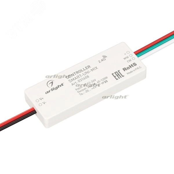Контроллер для мультибелой (MIX) светодиодной ленты (ШИМ). Питание/рабочее напряжение 12-24VDC, максимальный ток 2.5A на канал, 2 канала, максимальная мощность 60-120W. Корпус - PVC. Габариты 64x23.5x8.5 мм. Управляется пультами и панелями серии SMART (поставляются отдельно). !!!Актуальная схема привязки пультов в инструкции на сайте!!!