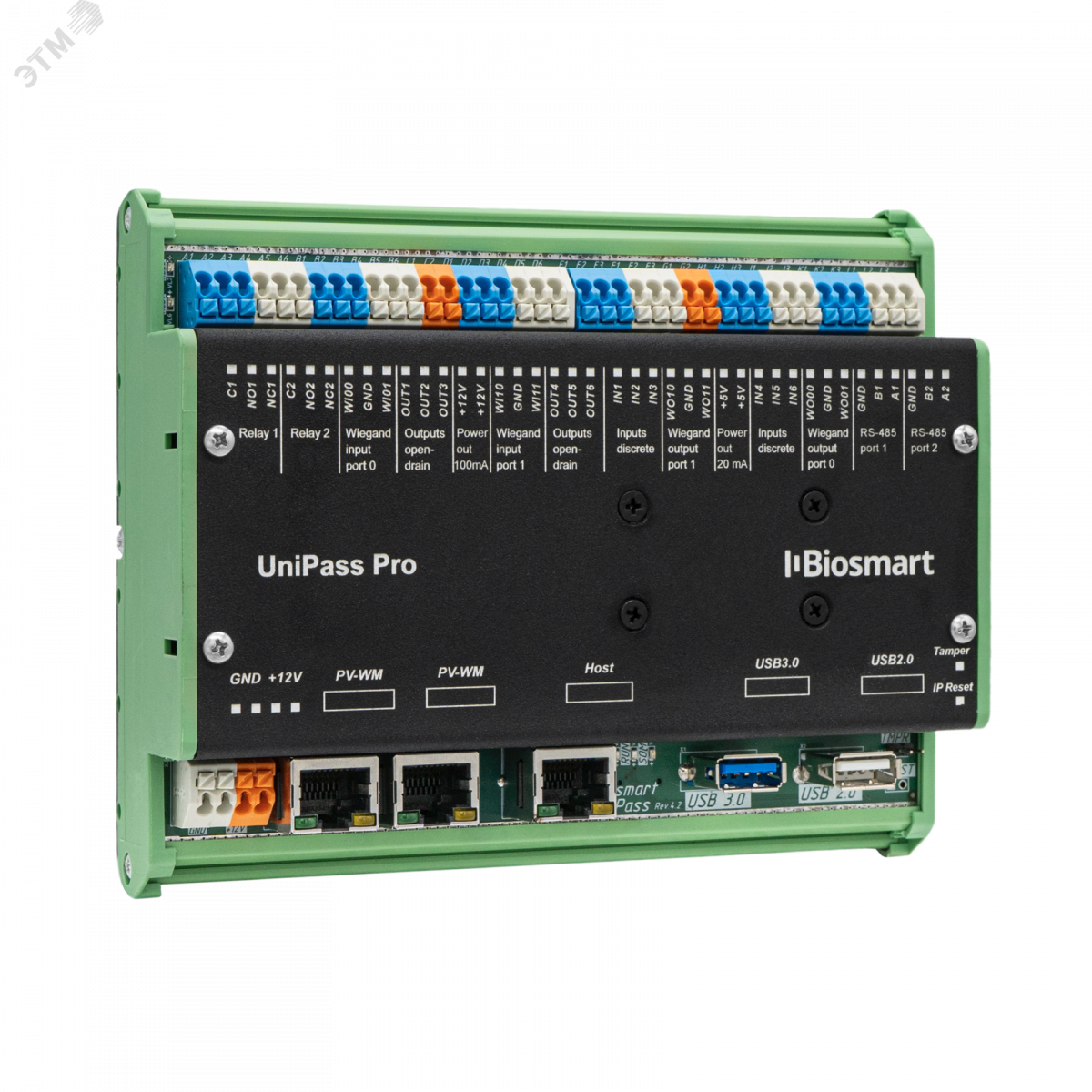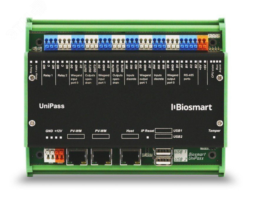 Управляющий контроллер BioSmart UniPass Pro предназначен для организации сетевой СКУД BioSmart на базе бесконтактного считывателя вен ладони PALMJET и RFID-считывателей. К входам и выходам контроллера может подключаться любое исполнительное устройство, такие как замки и турникеты, а также всевозможные датчики.
