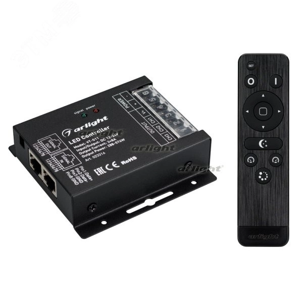3-канальный RGB контроллер с радиопультом черного цвета 12 кнопок. Питание 12-24VDC, макс.ток 3х8A, максимальная мощность 288-576W. Габариты контроллера 91х88х24 мм, габариты пульта 150х40х20 мм.