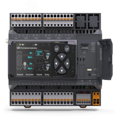 Контроллер нового поколения Matrix разработан специально для работы с большими потоками внешних данных. Высокая скорость, впечатляющая периферия, современный дизайн и отличное качество - свойства Matrix, которые решат большинство задач автоматизации просто и недорого. В контроллере Matrix сделаны аналоговые каналы универсальными. Теперь они конфигурируются программно, как дискретные. Но самое главное - это возможность комбинировать платы УСО для получения оптимальных конфигураций I/O 'на борту' контроллера для решения Ваших задач. К Matrix можно подключить до 244 модулей расширения FMR. За счет высокой скорости шины стало возможным опрашивать модули синхронно с работой основной программы, то есть в тике системы. Например, за 50 мс обрабатывается до 2500 I/O. При этом назначение адресов автоматизировано, внедрены специальные процедуры диагностики и обработки ошибок.