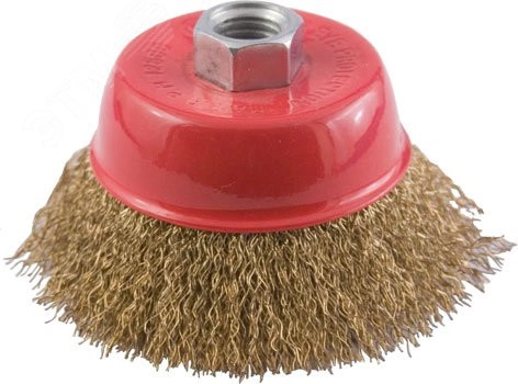 Кордщетка чашечная, гайка М14, стальная латунированная волнистая проволока 65 мм