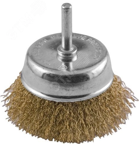 Кордщетка чашечная, со шпилькой, стальная латунированная волнистая проволока 50 мм