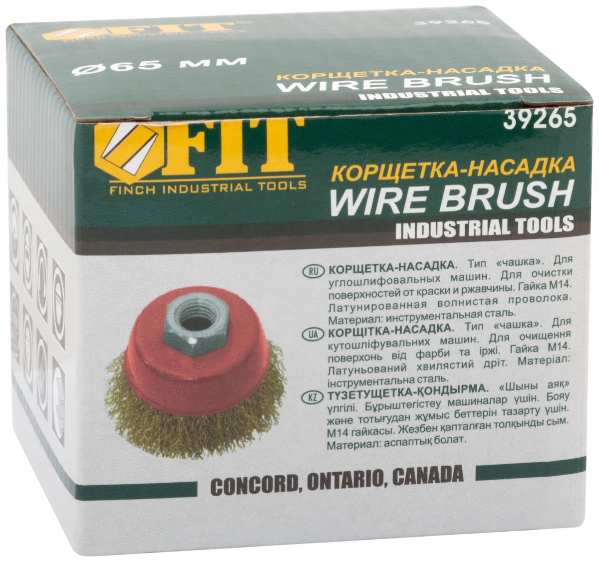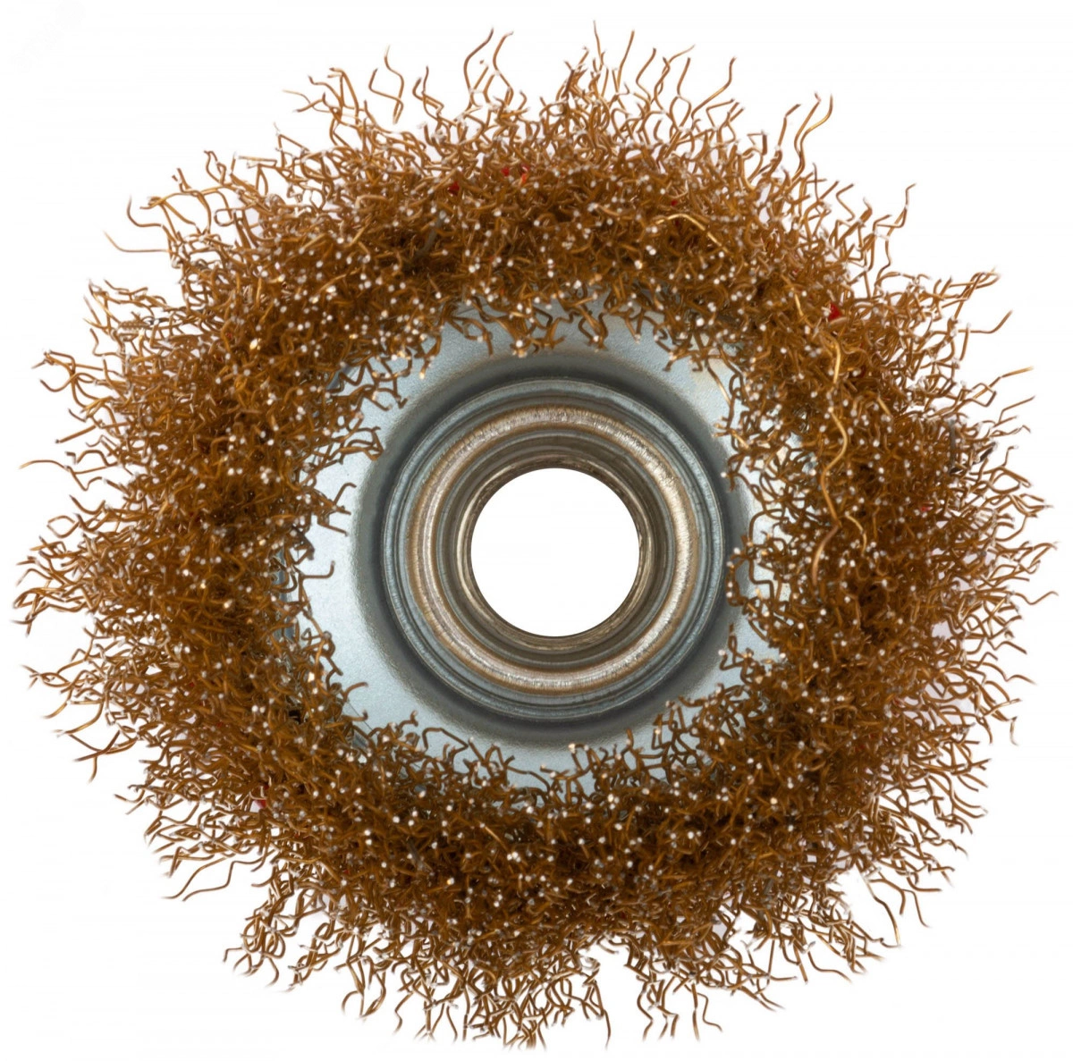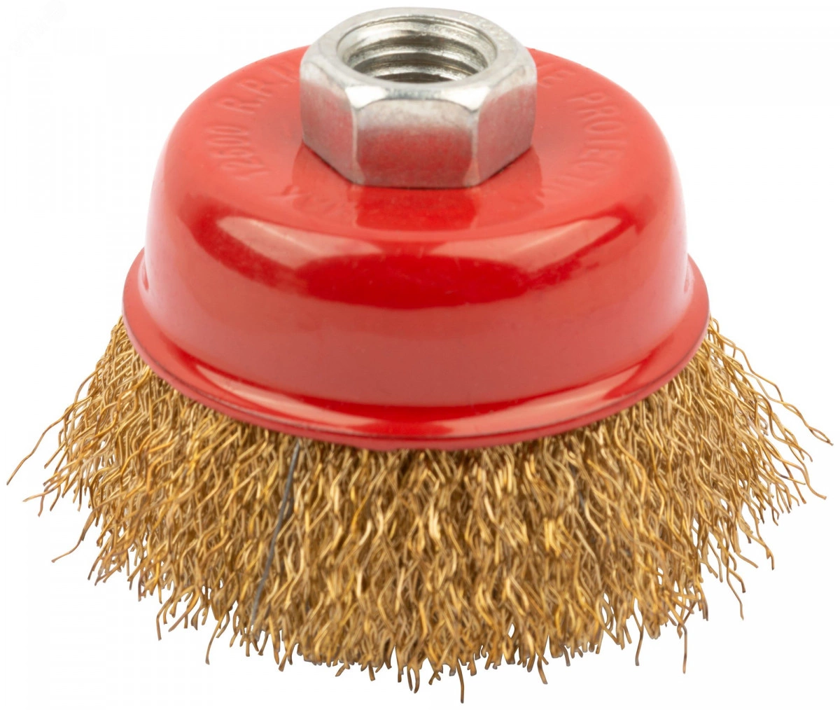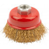 Кордщетка-чашка, гайка М14, стальная латунированная волнистая проволока 65 мм