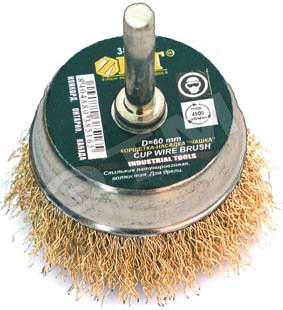 Кордщетка-чашка, со штифтом, стальная латунированная волнистая проволока 50 мм