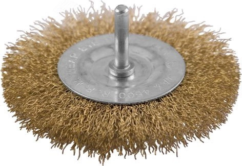 Кордщетка дисковая прямая, со шпилькой, стальная латунированная волнистая проволока 100 мм