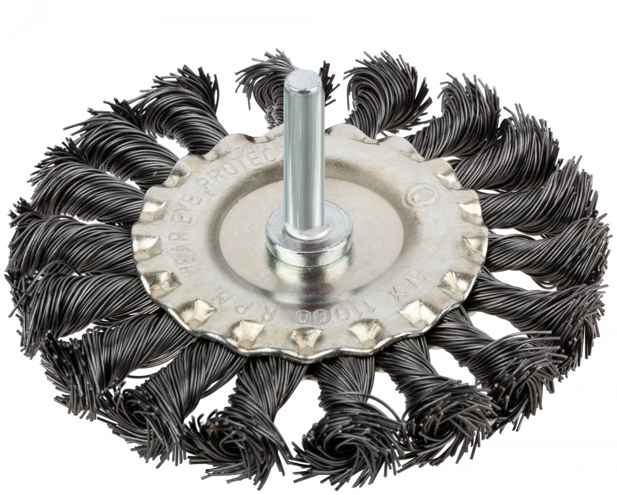 Кордщетка дисковая прямая, со шпилькой, стальная витая проволока 100 мм