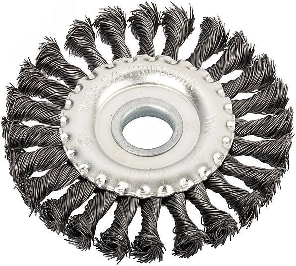 Тип 'колесо'. Для очистки поверхностей от краски и ржавчины. Для УШМ. осадочный диаметр 22,2 мм. Витая стальная проволока. Материал - термообработанная инструментальная сталь. Упаковка - картонная коробка.