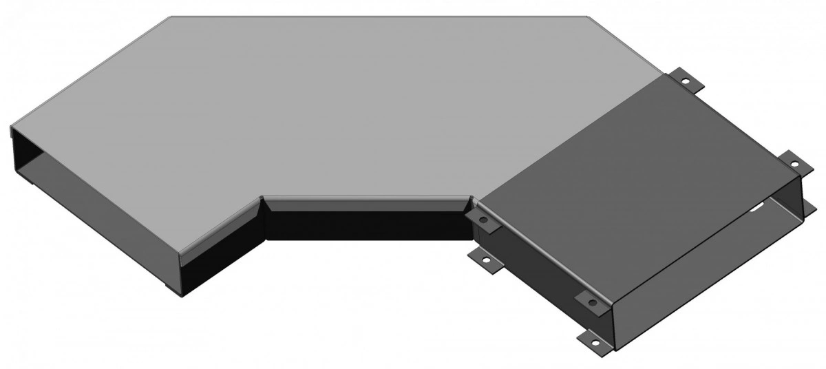 Короб угловой используется для изменения направления трассы в горизонтальной плоскости. Присоединяется к коробу монтажному при помощи соединителя. Соединитель с восемью винтовыми соединениями входит в комплект поставки.