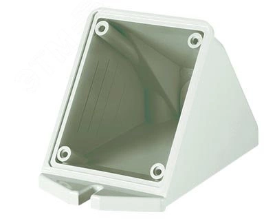 Коробка для настенного монтажа с наклоном предназначена для установки розеток скрытого монтажа. Крепление производится за точки на внешней стороне корпуса, что позволяет устанавливать розетки на неровных поверхностях.