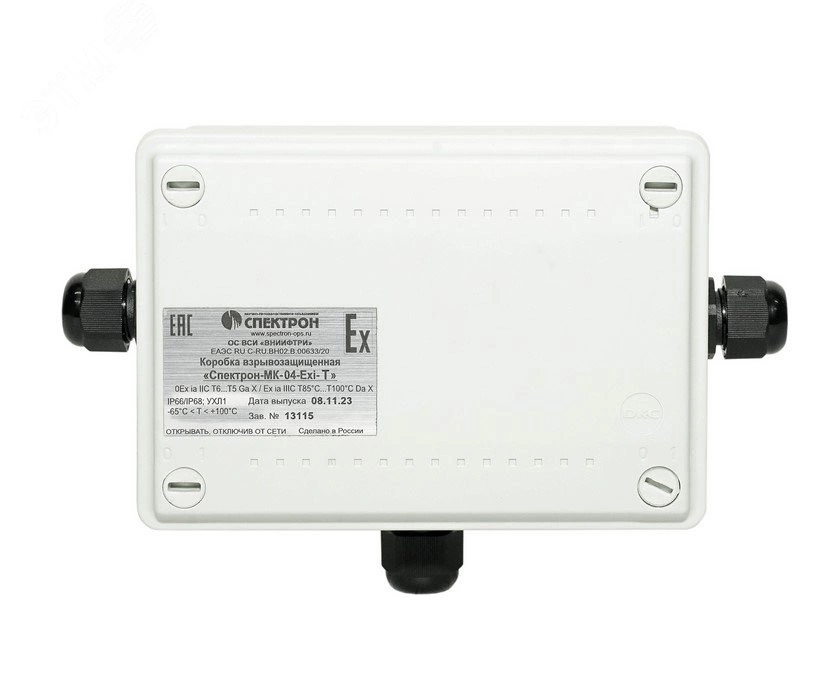 Коробка взрывозащищенная Спектрон ККВ-Exi, предназначена для соединения и разветвления электрических цепей общего и специального назначения. Коробка выполнена в соответствии с требованиями на взрывозащищенное оборудование подгрупп IIА, IIВ, IIС по ГОСТ 30852.0 (МЭК 60079-0), ГОСТ 30852.10 и соответствует маркировке взрывозащиты 0ExiaIICT6 Х.