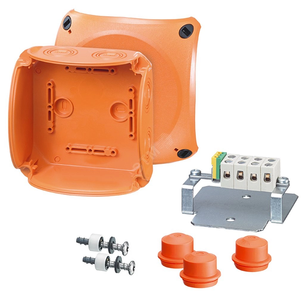 Огнестойкая' коробка с пределом огнестойкости Е30-Е90 протестирована с большинством кабелей европейских производителей, проведены испытания в РФ в составе ОКЛ. Целостность изоляции PH 120 позволяет применять коробки в отдельных цепях, где нет возможности организации ОКЛ (аварийные и эвакуационные светильники, пожарные датчики и иных цепях). Высококачественный поликарбонат, высокая ударная прочность IK09 (10 Дж), степень защиты IP65/IP66. Клеммы из огнестойкой керамики протестированы при работе в течение 120 минут при температуре 1250 градусов! Инновационный дизайн, высокие эксплуатационные характеристики.