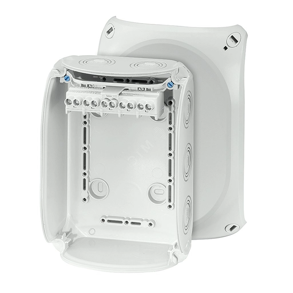 Всепогодная' коробка из высококачественного поликарбоната устойчивого к ультрафиолету и арессивным средам, высокая ударная прочность IK09 (10 Дж), степень защиты IP66/IP67/IP69, широкий температурный диапазон от -60 до +70 (протестировано на УХЛ 1), испытание нитью накала 960 градусов по стандарту UL94: V-0 (трудновоспламеняющаяся, самозатухающая), не содержит галогенов и силикона, пломбируемая, крепление как сквозь основание, так и при помощи петель внешнего крепления, входящих в комплект поставки. Преднамеченные выбиваемые метрические отверстия, возможность ввода кабеля через основание. Клемма с двумя зажимами на каждый полюс, до 8 проводников на полюс. Инновационный дизайн, высокие эксплуатационные характеристики, долговечность. Для незащищенной установке на улице, для применения на предприятиях с агрессивными средами, а так же в животноводческих комплексах и на инфраструктурных объектах, где требуется надежное энергоснабжение.