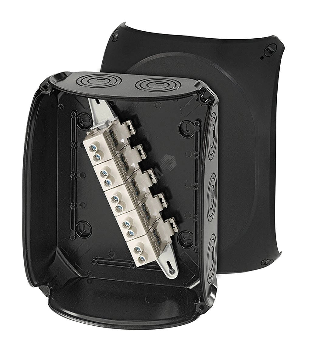 Всепогодная' коробка из высококачественного поликарбоната устойчивого к ультрафиолету и арессивным средам, высокая ударная прочность IK09 (10 Дж), степень защиты IP66/IP67/IP69, широкий температурный диапазон от -60 до +70 (протестировано на УХЛ 1), испытание нитью накала 960 градусов по стандарту UL94: V-0 (трудновоспламеняющаяся, самозатухающая), не содержит галогенов и силикона, пломбируемая, крепление как сквозь основание, так и при помощи петель внешнего крепления, входящих в комплект поставки. Преднамеченные выбиваемые метрические отверстия, возможность ввода кабеля через основание. Клемма с двумя зажимами на каждый полюс, до 8 проводников на полюс. Инновационный дизайн, высокие эксплуатационные характеристики, долговечность. Для незащищенной установке на улице, для применения на предприятиях с агрессивными средами, а так же в животноводческих комплексах и на инфраструктурных объектах, где требуется надежное энергоснабжение.