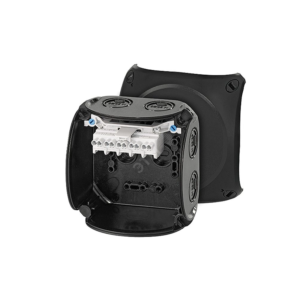 Всепогодная' коробка из высококачественного поликарбоната устойчивого к ультрафиолету и арессивным средам, высокая ударная прочность IK09 (10 Дж), степень защиты IP66/IP67/IP69, широкий температурный диапазон от -60 до +70 (протестировано на УХЛ 1), испытание нитью накала 960 градусов по стандарту UL94: V-0 (трудновоспламеняющаяся, самозатухающая), не содержит галогенов и силикона, пломбируемая, крепление как сквозь основание, так и при помощи петель внешнего крепления, входящих в комплект поставки. Преднамеченные выбиваемые метрические отверстия. Клемма с двумя зажимами на каждый полюс, до 8 проводников на полюс. Инновационный дизайн, высокие эксплуатационные характеристики, долговечность. Для незащищенной установке на улице, для применения на предприятиях с агрессивными средами, а так же в животноводческих комплексах и на инфраструктурных объектах, где требуется надежное энергоснабжение.