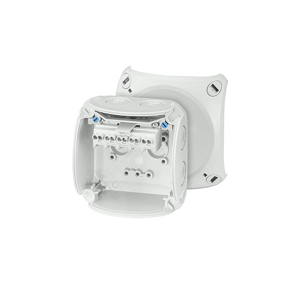 Всепогодная' коробка из высококачественного поликарбоната устойчивого к ультрафиолету и арессивным средам, высокая ударная прочность IK09 (10 Дж), степень защиты IP66/IP67/IP69, широкий температурный диапазон от -60 до +70 (протестировано на УХЛ 1), испытание нитью накала 960 градусов по стандарту UL94: V-0 (трудновоспламеняющаяся, самозатухающая), не содержит галогенов и силикона, пломбируемая, крепление как сквозь основание, так и при помощи петель внешнего крепления, входящих в комплект поставки. Преднамеченные выбиваемые метрические отверстия. Клемма с двумя зажимами на каждый полюс, до 8 проводников на полюс. Инновационный дизайн, высокие эксплуатационные характеристики, долговечность. Для незащищенной установке на улице, для применения на предприятиях с агрессивными средами, а так же в животноводческих комплексах и на инфраструктурных объектах, где требуется надежное энергоснабжение.