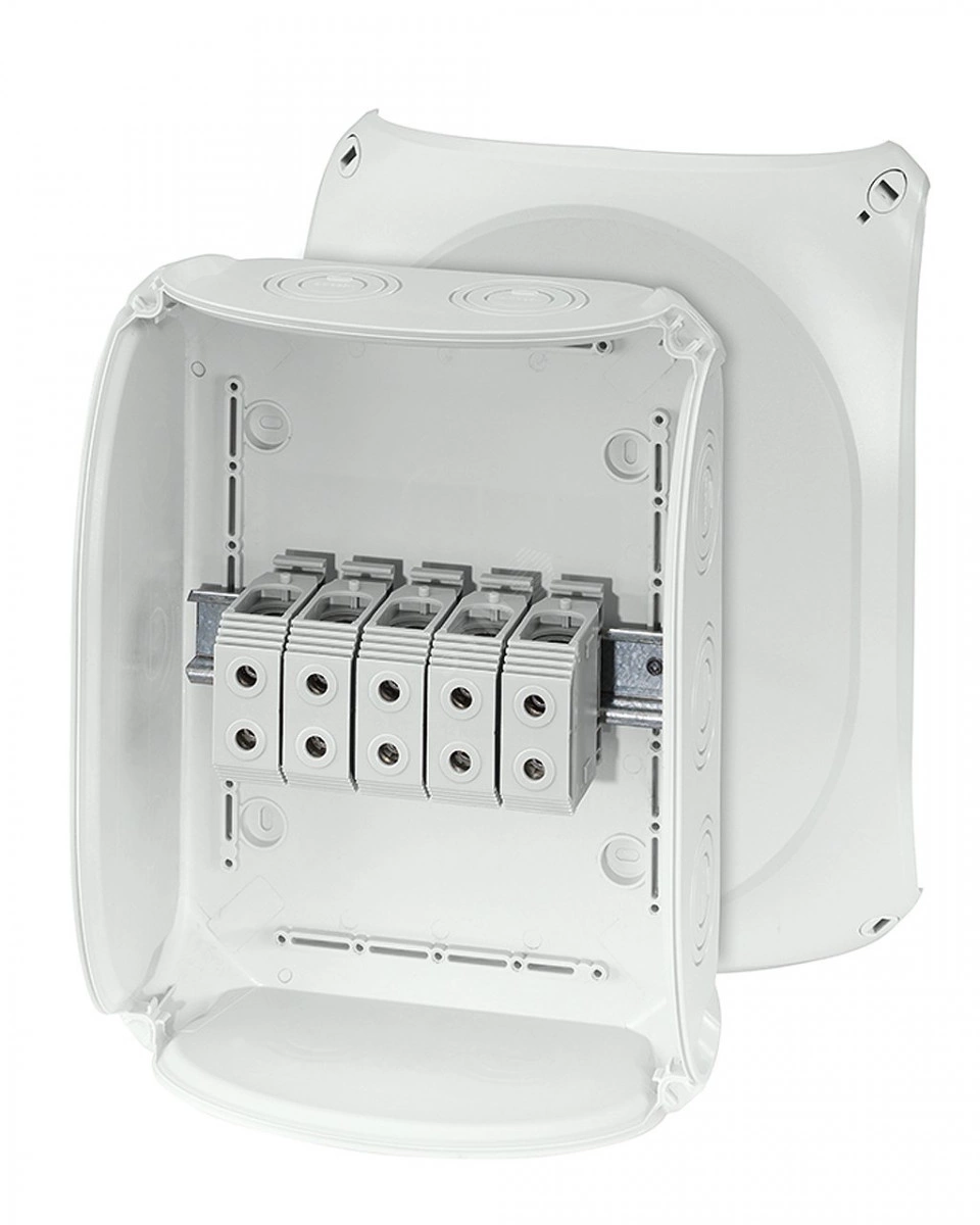 Всепогодная' коробка из высококачественного поликарбоната устойчивого к ультрафиолету и арессивным средам, высокая ударная прочность IK09 (10 Дж), степень защиты IP66/IP67/IP69, широкий температурный диапазон от -60 до +70 (протестировано на УХЛ 1), испытание нитью накала 960 градусов по стандарту UL94: V-0 (трудновоспламеняющаяся, самозатухающая), не содержит галогенов и силикона, пломбируемая, крепление как сквозь основание, так и при помощи петель внешнего крепления, входящих в комплект поставки. Преднамеченные выбиваемые метрические отверстия, возможность ввода кабеля через основание. Клемма с двумя зажимами на каждый полюс, до 6 проводников на полюс. Инновационный дизайн, высокие эксплуатационные характеристики, долговечность. Для незащищенной установке на улице, для применения на предприятиях с агрессивными средами, а так же в животноводческих комплексах и на инфраструктурных объектах, где требуется надежное энергоснабжение.