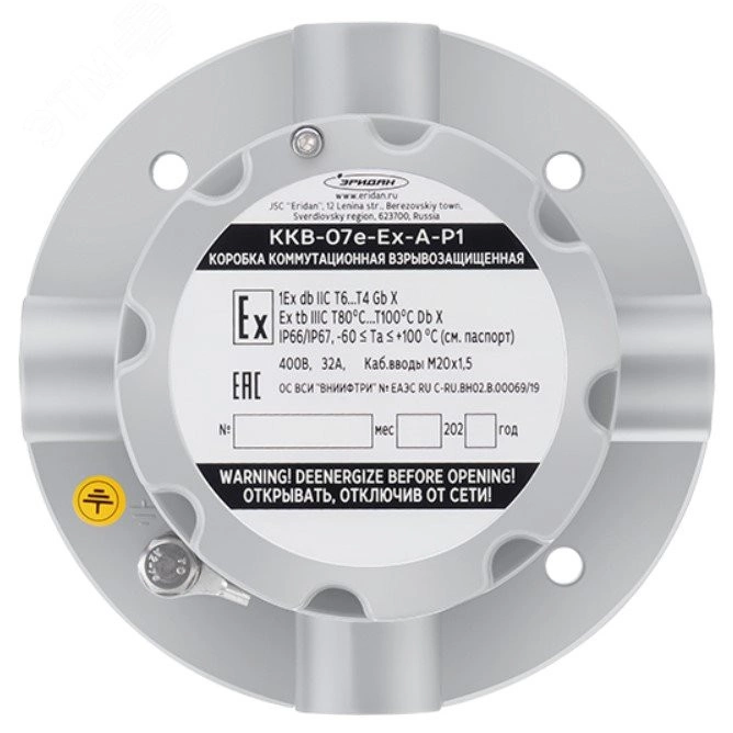 Коробка коммутационная взрывозащищенная из алюминиевого сплава ККВ-07е-Ex-А-Р1-К-БК1, без кабельных вводов