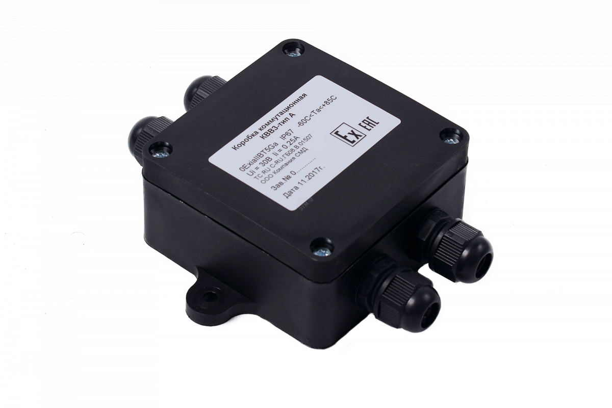Коробки коммутационные взрвозащищенные КВМК предназначены для выполнения соединений (разветвлений) электрических цепей общего и специального назначения (силовых цепей, цепей управления, сигнализации и т.д.) во взрывоопасных зонах. Коробки предназначены для ввода бронированных, небронированных электрических кабелей круглого сечения и кабелей в металлорукаве. Коробки относятся к электрооборудованию группы II по ГОСТ Р МЭК 60079-0-2011 и предназначена для применения во взрывоопасных зонах помещений и наружных установок. Коробки могут использоваться во взрывоопасных зонах класса 1 и 2 по ГОСТ IEC 60079-10-1-2011.