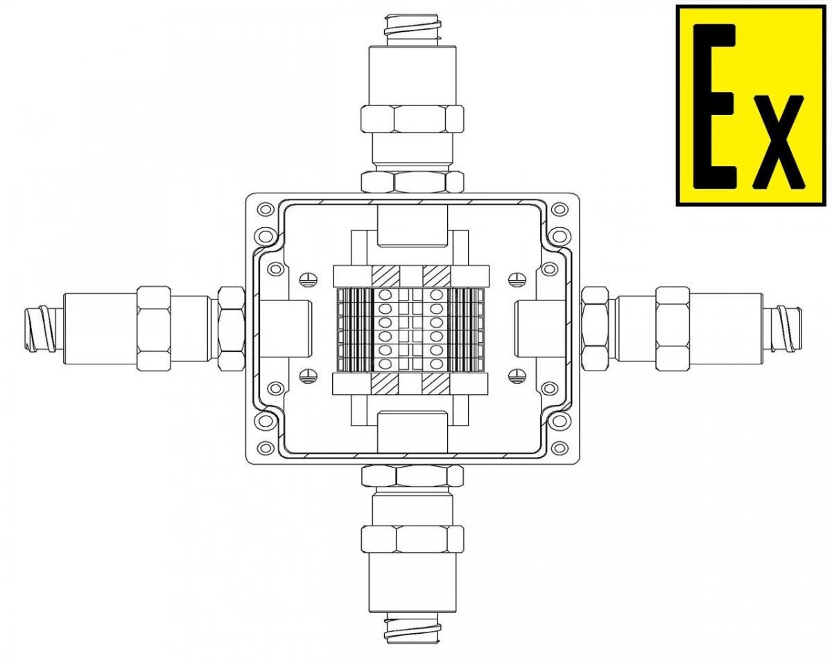 Коробки коммутационные взрвозащищенные КВМК предназначены для выполнения соединений (разветвлений) электрических цепей общего и специального назначения (силовых цепей, цепей управления, сигнализации и т.д.) во взрывоопасных зонах. Коробки предназначены для ввода бронированных, небронированных электрических кабелей круглого сечения и кабелей в металлорукаве. Коробки относятся к электрооборудованию группы II по ГОСТ Р МЭК 60079-0-2011 и предназначена для применения во взрывоопасных зонах помещений и наружных установок. Коробки могут использоваться во взрывоопасных зонах класса 1 и 2 по ГОСТ IEC 60079-10-1-2011.