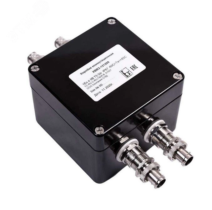 Коробка коммутационная взрывозащищенная КВМК 101004 EXE П 2MG16. Предназначена для выполнения соединений (разветвлений) электрических цепей общего и специального назначения (силовых цепей, цепей управления, сигнализации и т.д.) во взрывоопасных зонах. Коробки служат для ввода бронированных, небронированных электрических кабелей круглого или плоского сечения и кабелей в металлорукаве или трубе.