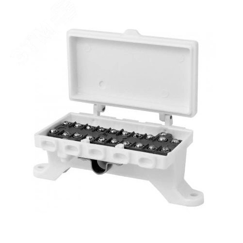 Коробка распределительная телефонная настенная. Рассчитана на 10 пар проводов, 63х147х53мм.
